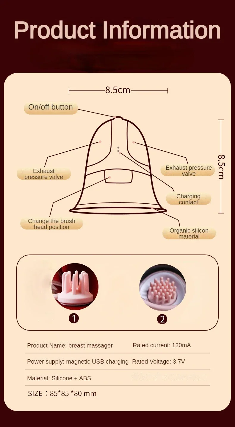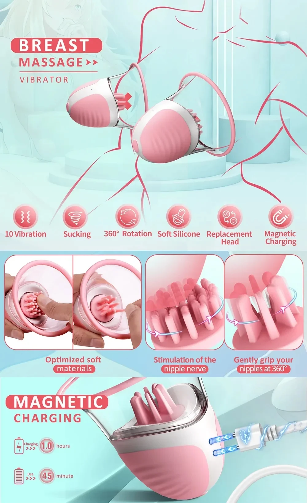 - Dual Stimulation: The Nipple Massage Vibrator offers dual stimulation with its suction cup and rotating brush head, wrapping your nipples in a wave of pleasure.