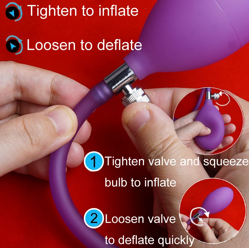 - Hand Pump Included: Inflate the butt plug effortlessly with the included hand pump. Simply squeeze to inflate and use the easy-release valve for quick deflation.