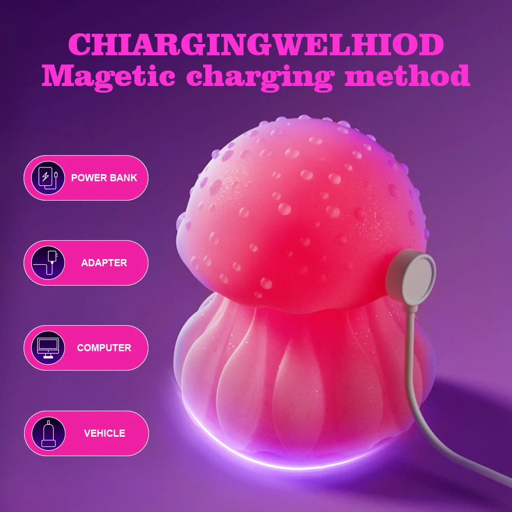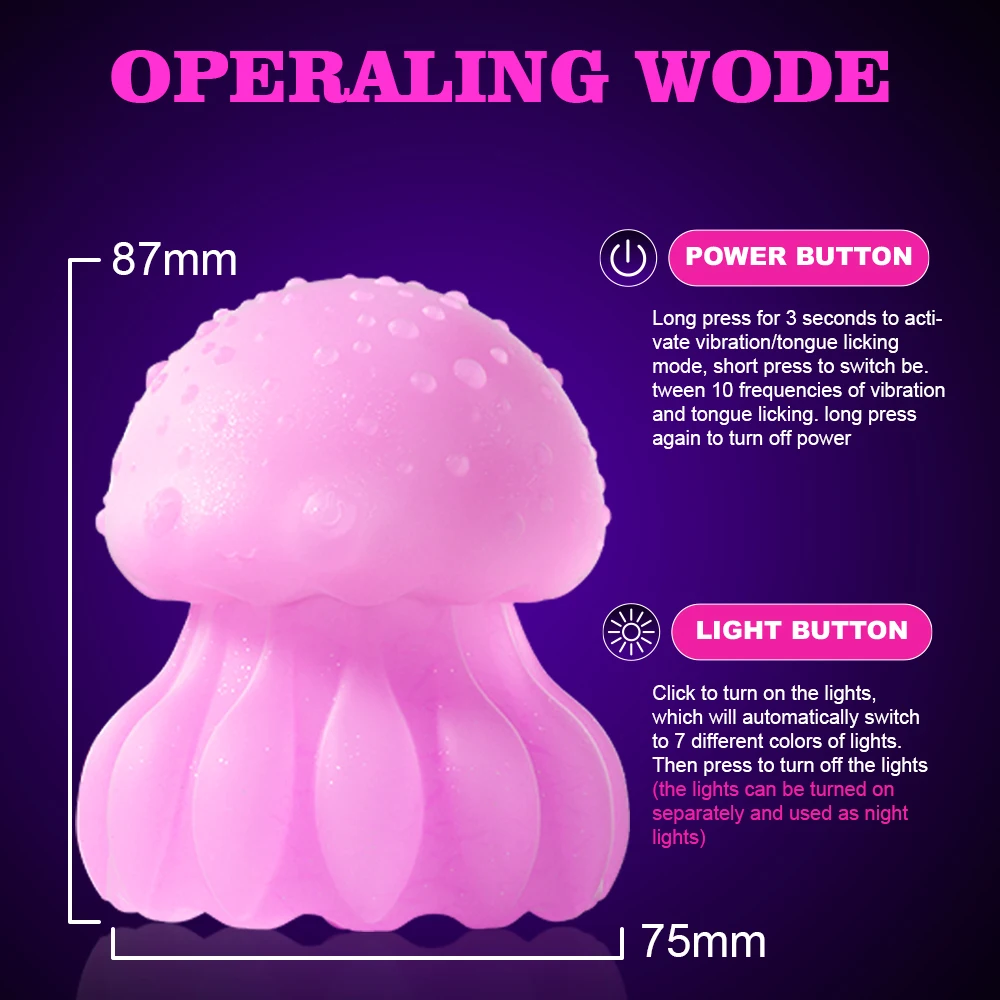 Powerful Tongue Licking Clitoral Stimulator with LED Rainbow Lights Sex Toys for Couples Jellyfish Vibrator